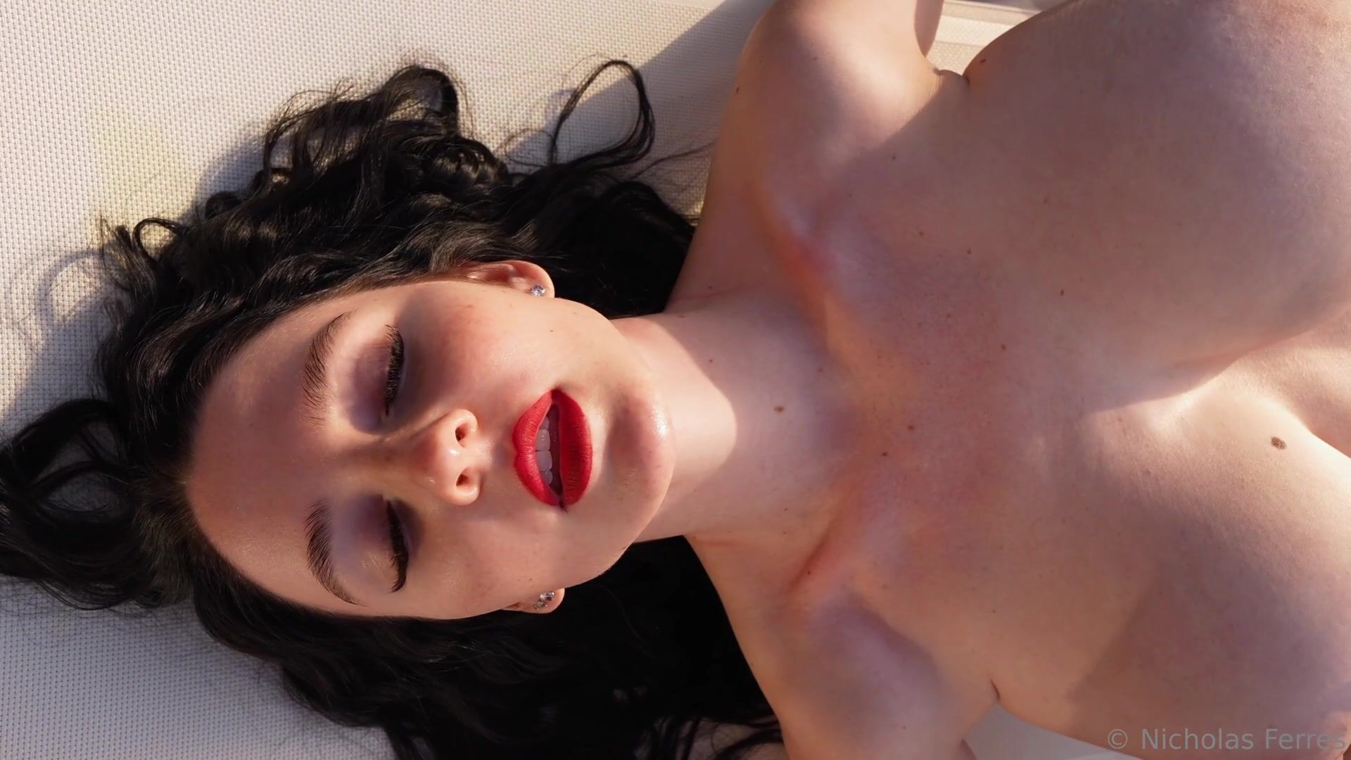 Laurine red bikini poolside strip