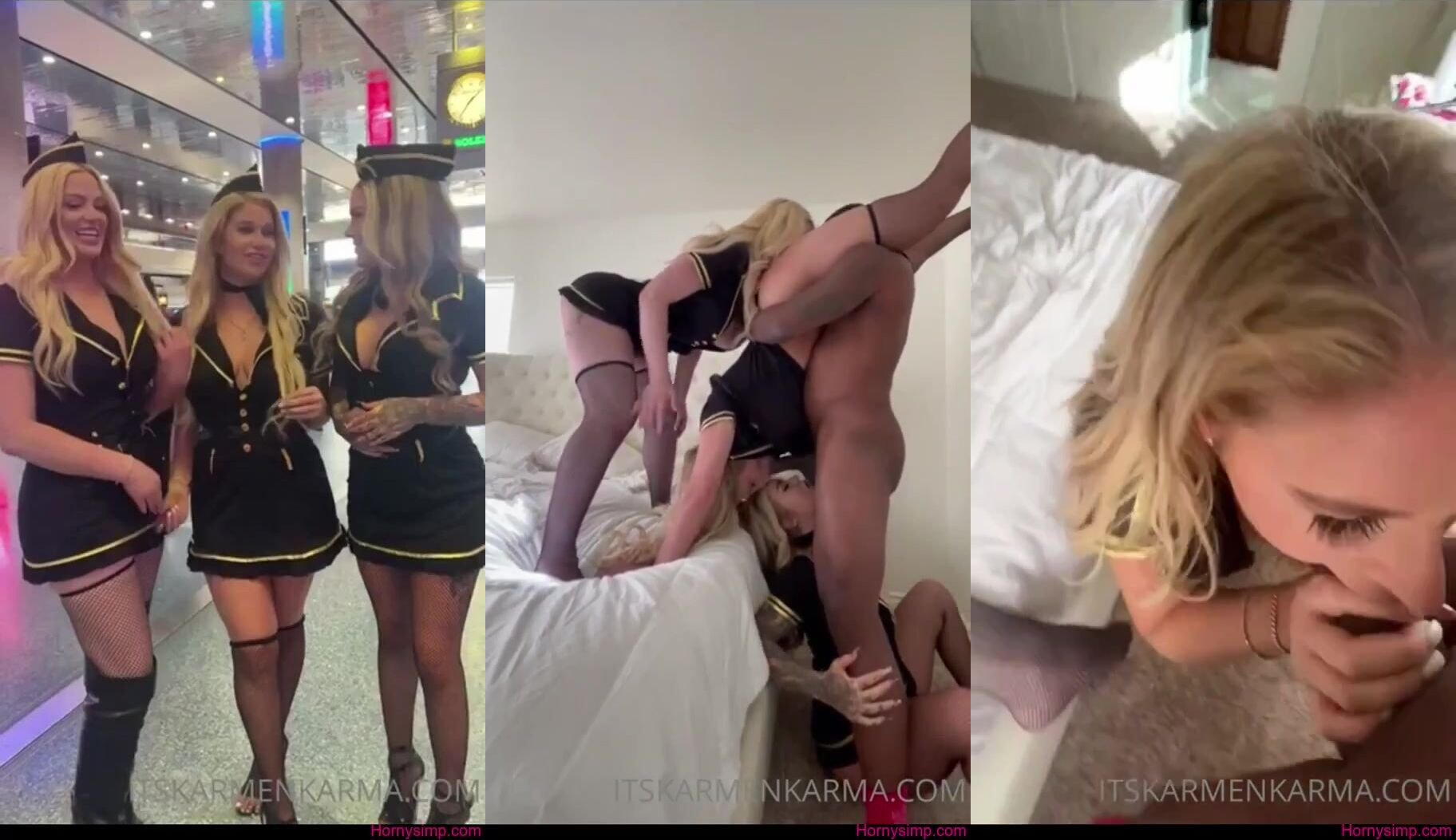 Karmen Karma 3 Blondes Air Hostes Sharing a BBC