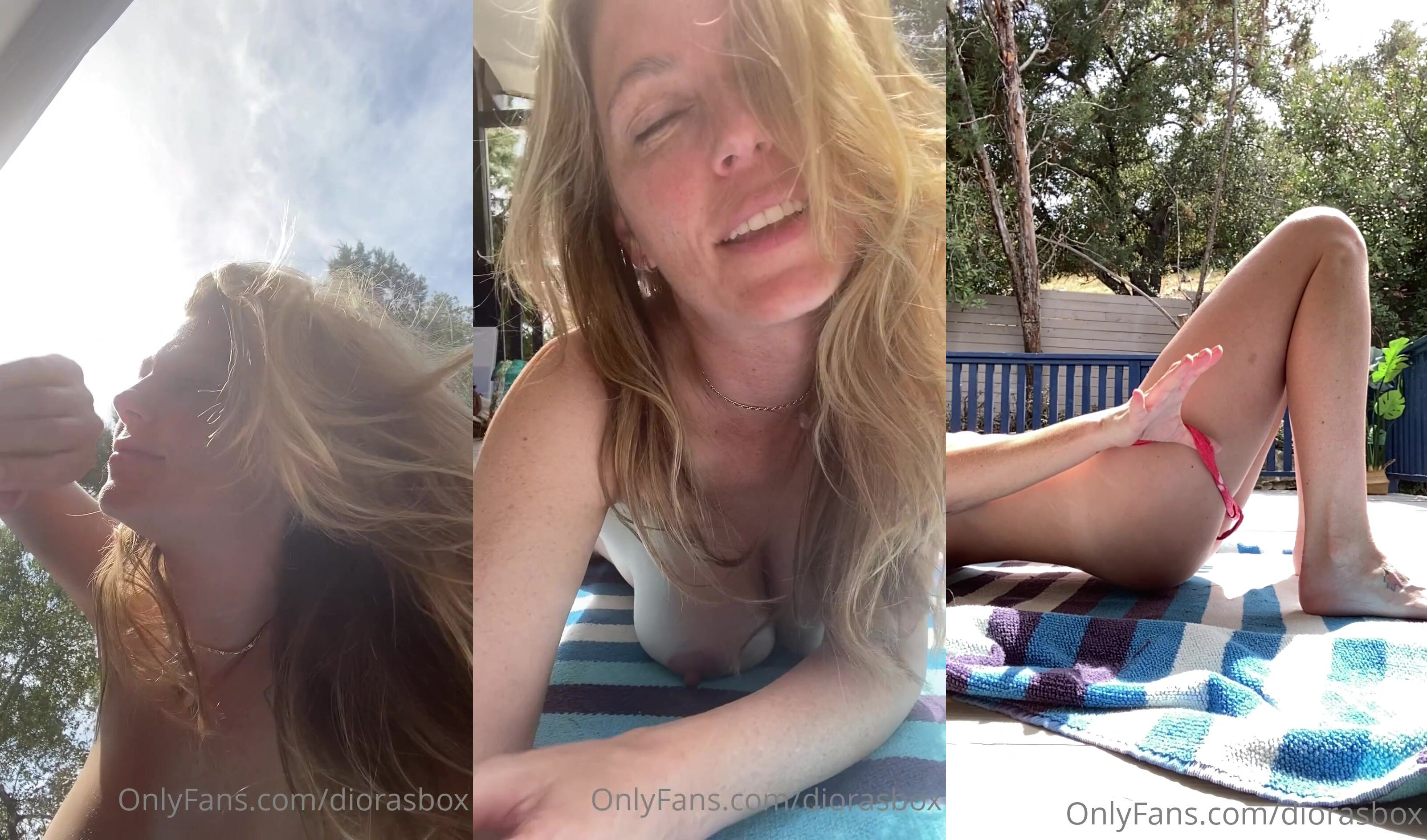 Diora Baird naked sunbath tease at the pool