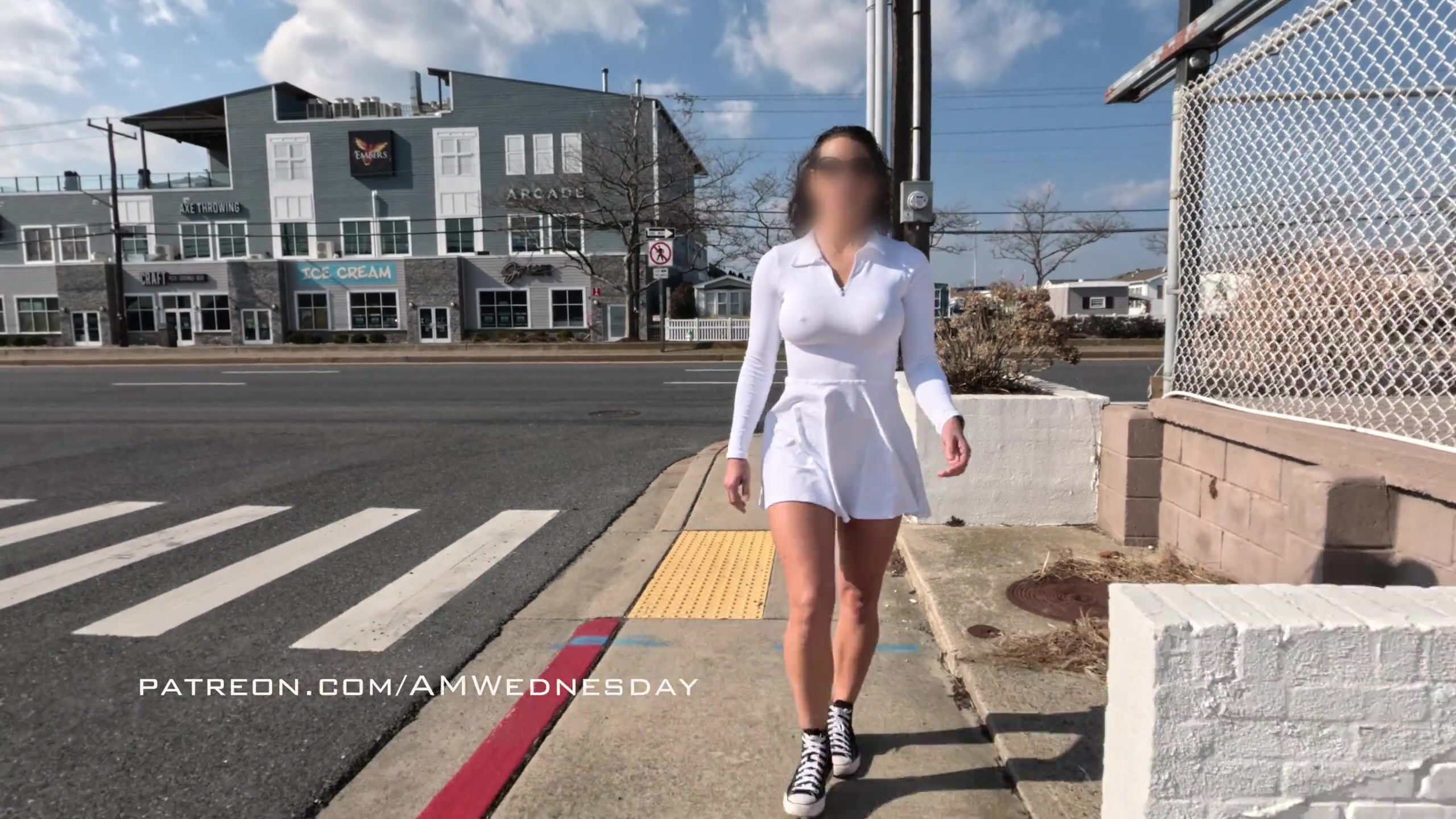 AmWednesday - White Dress Pokies & Upskirt