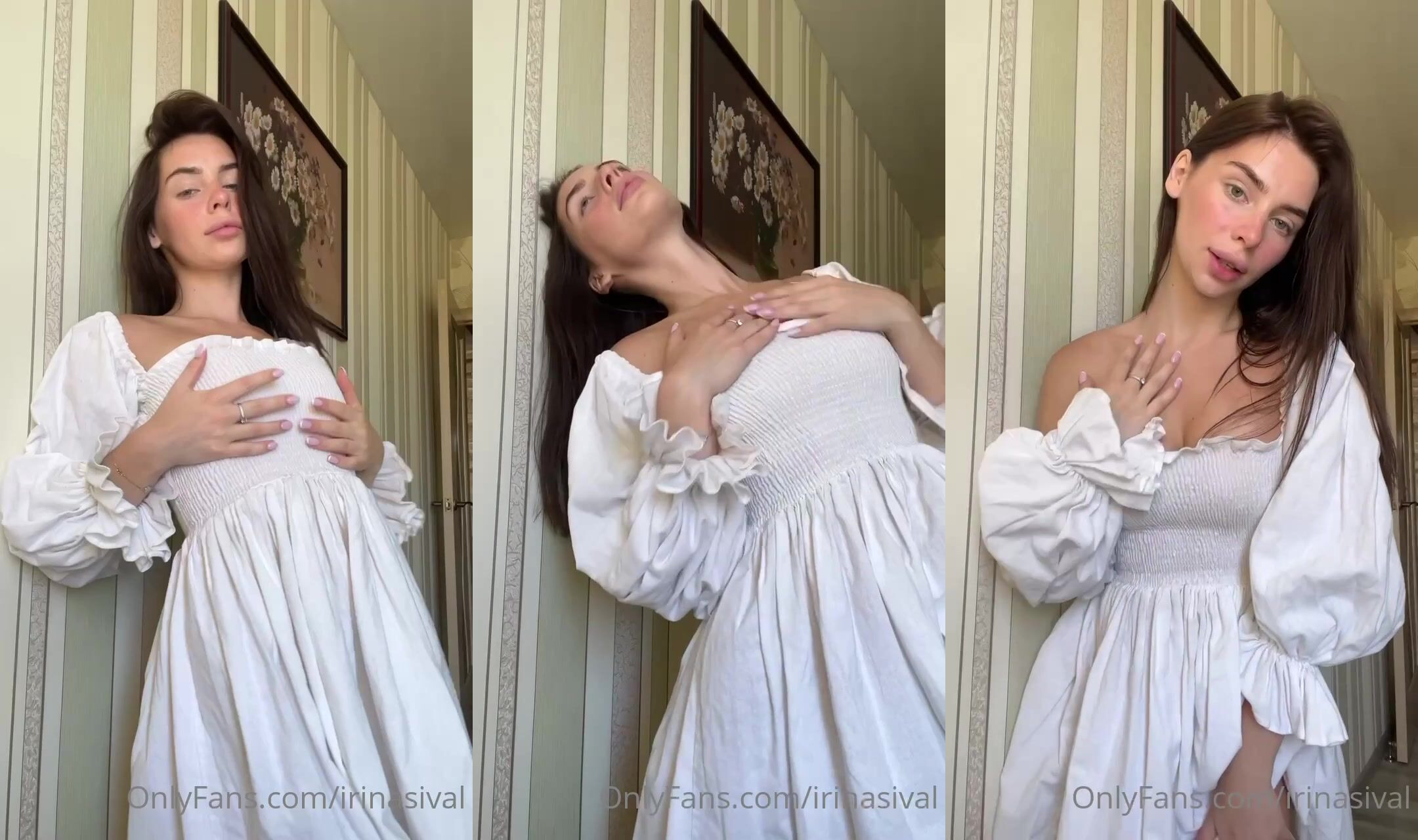 Irina Sivalnaya in white dress shows off her boobs & holes
