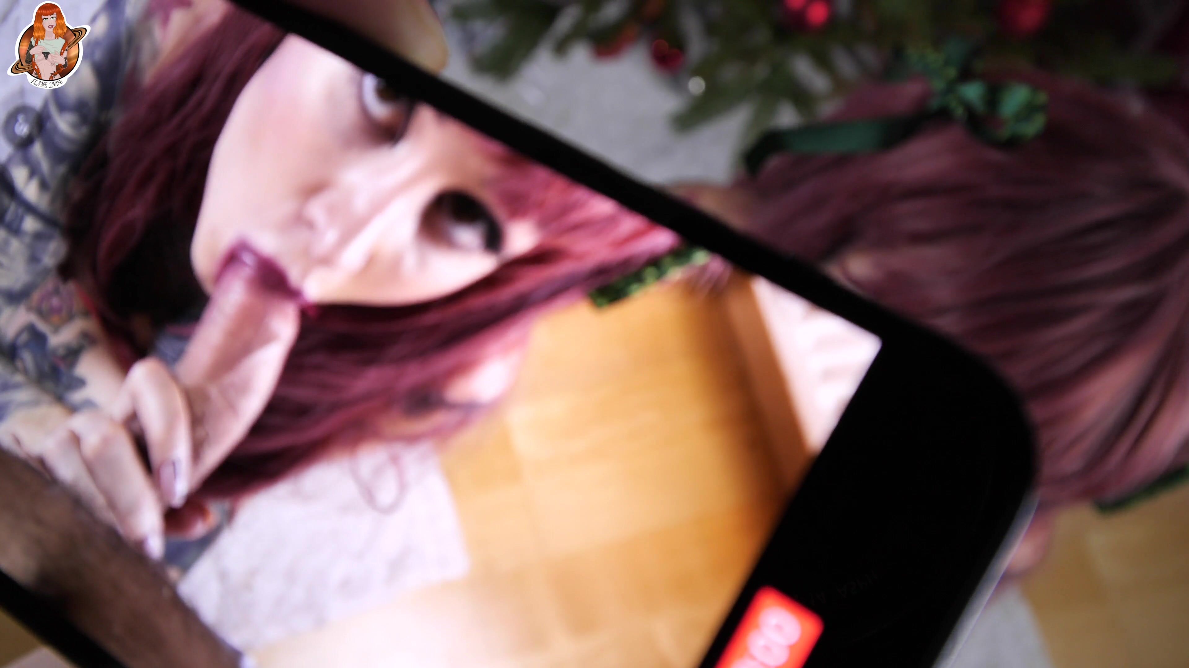 CreamySpot squirts with a sex machine after decorating a Christmas tree